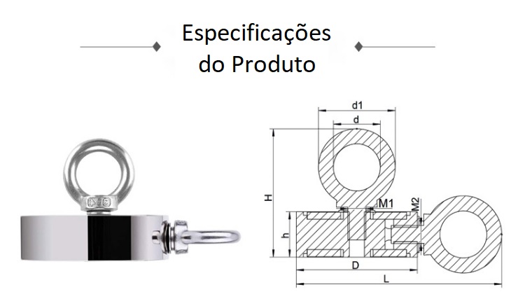 Ímã para pesca magnética com duplo puxador